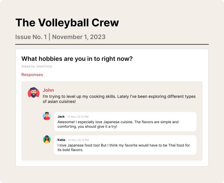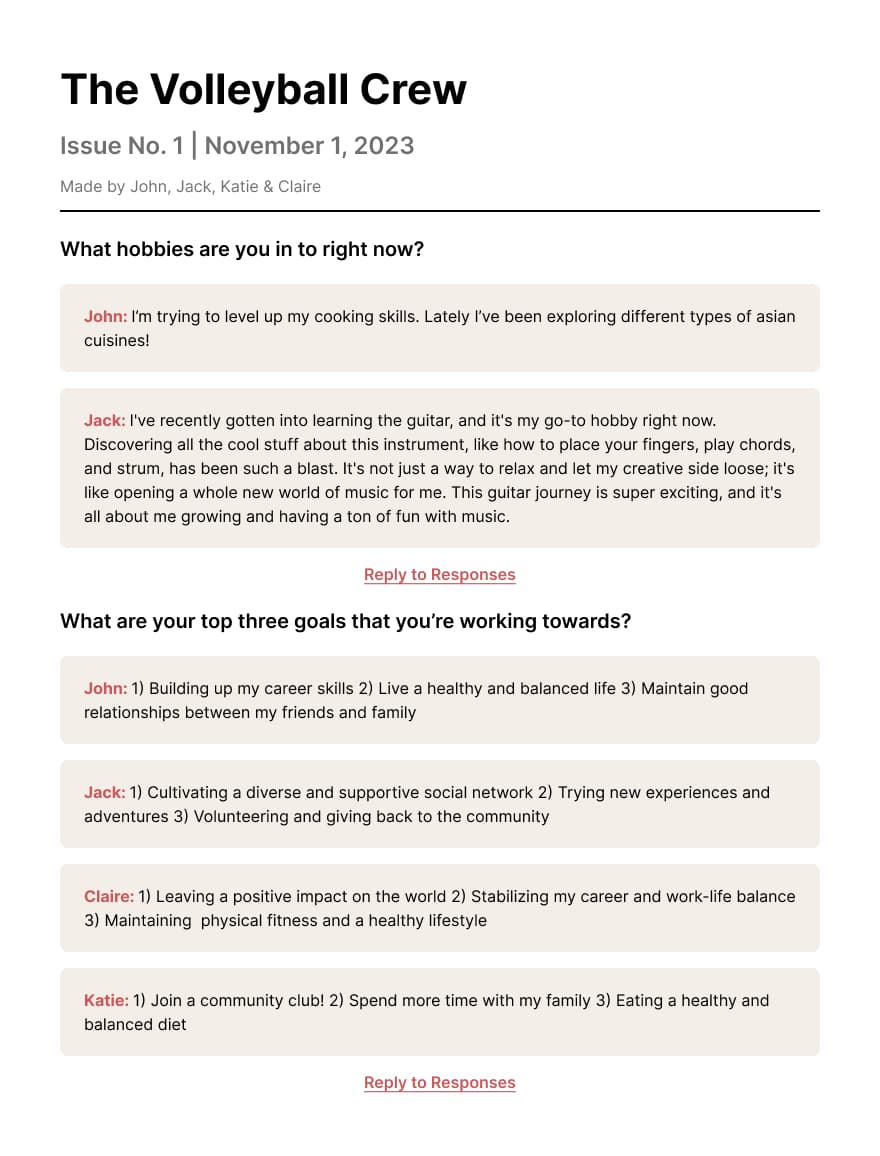 Add your friends to the group and responses from each issue will be sent directly to your email.